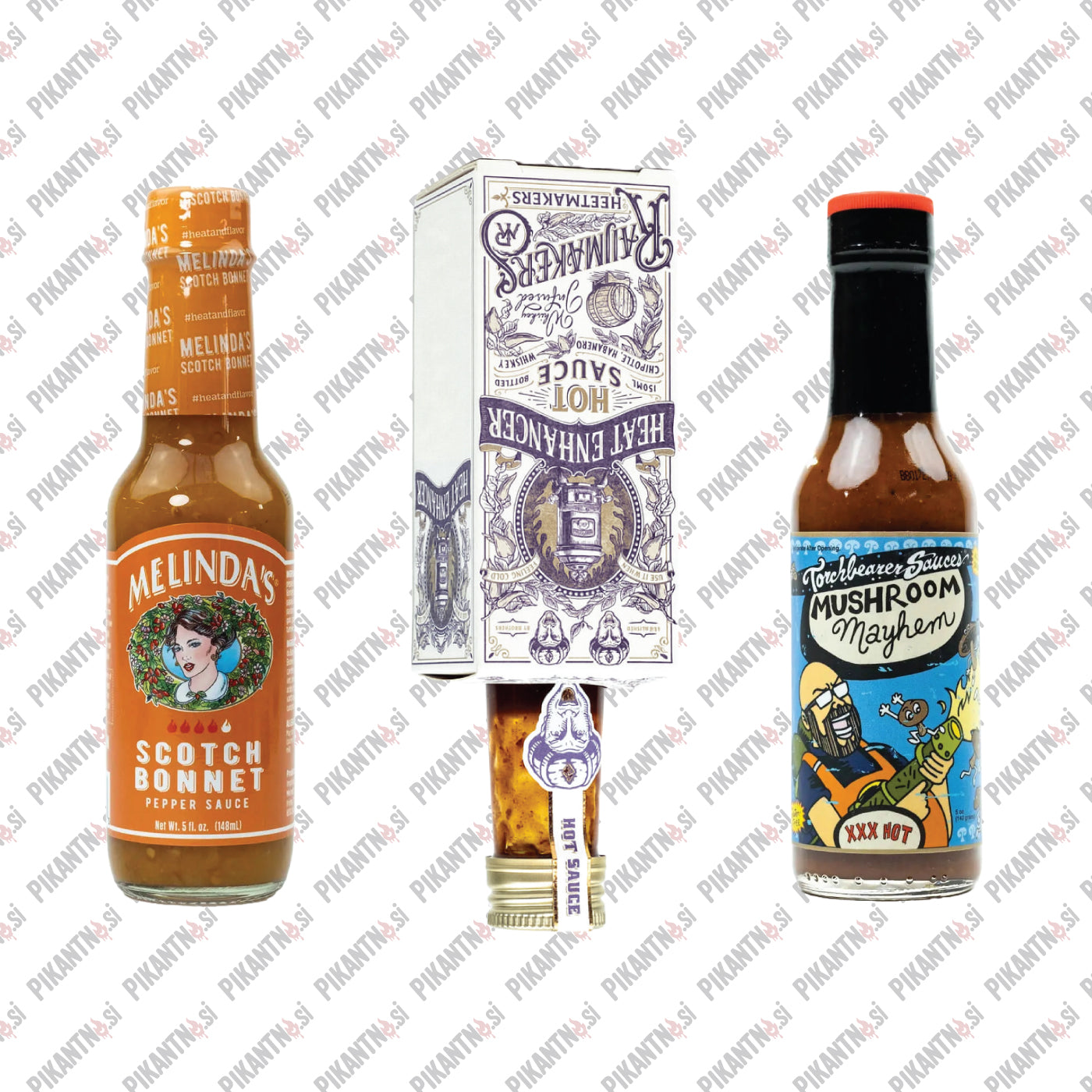 Naše komplete smo poimenovali kar "3 pack", ker vsebujejo tri omake različnih proizvajalcev z isto stopnjo pikantnosti, po znižani ceni. Previdno, tukaj gremo že v teritorij hude pikantnosti in odsvetujemo ljubiteljem nežnih okusov. So pa popolne omake če iščeš drzne, samozavestne okuse s karakterjem.